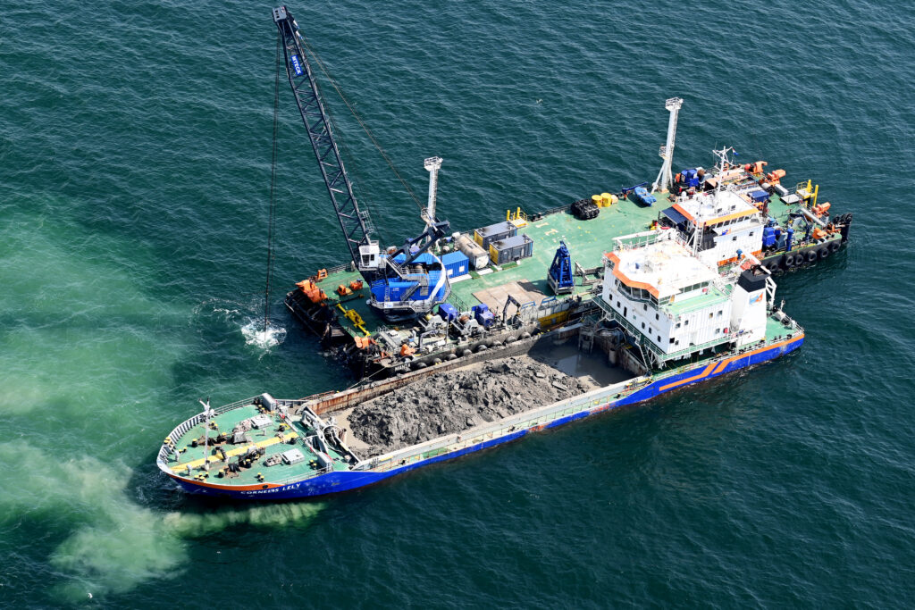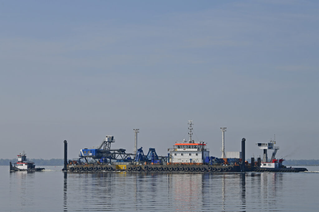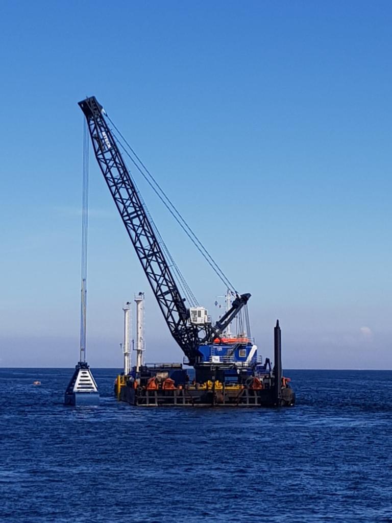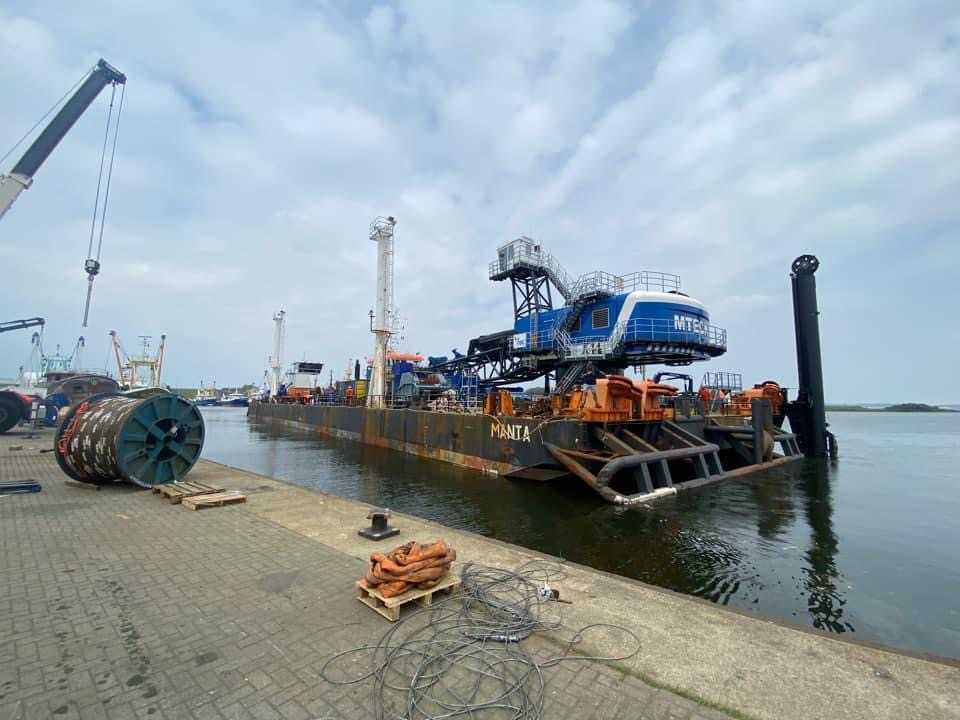 Mounted on the Manta as a dredging crane, responsible for dredging the Fehmarnbelt tunnel trench